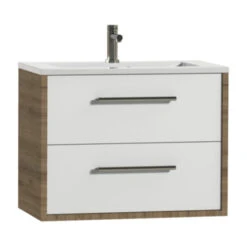 Tiger Badkamermeubel Boston 80 Cm Chalet Eik Met Polybeton Wastafel Wit En Ronde Grepen Chroom