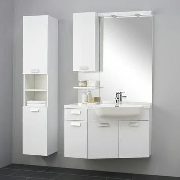 Door zijn slanke vormgeving past de hoogglans witte Fabulous-badmeubelset rechtshoekig van 100cm breed in bijna iedere badkamer. De uit hoogwaardig MDF vervaardigde badmeubelset bestaat uit een onderkast, spiegelkast en wastafel. De onderkast en spiegelkast zijn voorzien van deuren en laden met softclose scharnieren en ladegeleiders, zodat de deuren en laden zacht en geluidloos sluiten. De aluminium handgrepen bieden goede grip en geven de met 4 laklagen afgewerkte badmeubelset een chique uitstraling. De wastafel met overloop is gemaakt van gemalen kunstmarmer (polybeton), sterk en duurzaam materiaal waardoor de wasbak lang meegaat. Let op: bij deze wastafel zit het kraangat aan de rechterkant van het blad, gezien als je voor het meubel staat. Het hoogglans witte badmeubel rechtshoekig beschikt over een handig planchet waarop je bijvoorbeeld jouw parfum of tandenborstel plaatst. De lichtkoof die je erbij krijgt geleverd, maakt deze badmeubelset 100cm uit de serie Fabulous compleet.