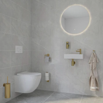 Deze moderne Marho Luxor reserverolhouder in geborsteld messing geeft je toilet of badkamer een moderne uitstraling. De houder is geschikt voor 2 rollen waardoor je altijd extra toiletpapier bij de hand hebt. Bovendien monteer je hem eenvoudig aan de wand met de meegeleverde schroeven en Fischer pluggen. De Luxor serie omvat daarnaast ook een groot aantal andere accessoires in dezelfde stijl voor aankleding van de badkamer en toiletruimte.