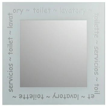 De spiegel 40x40cm servicios toilet is een spiegel van het merk Plieger. Deze decoratieve Plieger spiegel heeft een afmeting van 40x40cm met in het gezandstraald kader het woord toilet in verschillende talen. Een trendy spiegel van Plieger voor in het toilet