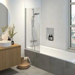 De badwand is 75 cm breed en maar liefst 140 cm hoog. De wand draait zowel naar binnen als naar buiten, zodat je de vrije ruimte in je badkamer optimaal benut. Bovendien is dat makkelijker (en veiliger) als je het bad in of uit stapt.