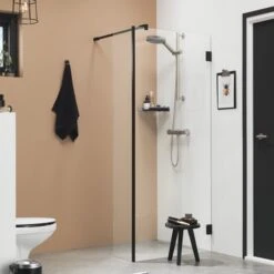 De volledig profielloze serie ‘I AM’ is met recht een transparante alleskunner. Naast diverse standaard maatvoeringen zijn talloze maatwerkoplossingen mogelijk. Zo kunnen we de breedte en hoogte aanpassen, maar bijvoorbeeld ook eventuele schuintes in de muren of het plafond opvangen. Deze Sealskin Inloopdouche I AM A1 138x30x200 cm Zwart bestaat uit een wand met een vast deel op 90 graden. Het is een bijzonder transparante inloopdouche die nét even wat meer water in de doucheruimte houdt. Wat deze douche écht bijzonder maakt, is de unieke matzwarte afwerking. Zo breng je een unieke sfeer in je badkamer. Het veiligheidsglas van maar liefst 8mm is altijd voorzien van een antikalk laag waardoor kalk en viezigheid zich minder snel hecht. I AM Inloopdouches van het type A1 zijn beschikbaar in 880, 980 en 1180mm. Deze inloopdouche is tevens beschikbaar in een luxueuze zilver hoogglans afwerking en in een stoere RVS uitstraling.