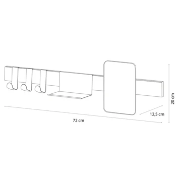 De Sealskin Kapstok met Spiegel Brix Wit is een kapstok met een afmeting van 72 cm breed, 20 cm hoog en 12,5 cm diep. Met de bijgeleverde schroeven en montagehandleiding schroef je de kapstok makkelijk zelf aan de muur. Op de kapstok kun je de 3 haken, het opbergplankje en de spiegel zelf inrichten en verschuiven. Op de kapstok krijg je 1 jaar garantie. In de Brix-serie kun je ook andere bijpassende producten kopen bij Gamma.