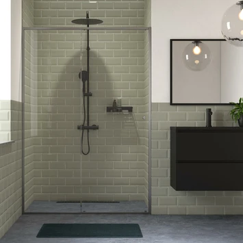 Creëer een rustige basis met deze schuifdeur voor plaatsing in een nis uit de Contour-serie. Hij is stijlvol door zijn solide bouw en matgrijze kleurafwerking. De kleur mat grijs is allesbehalve saai en kan goed gecombineerd worden met verschillende badkamerstijlen. Dankzij het minimalistische kader oogt jouw badkamer direct ruimtelijk. Het 6 mm dikke veiligheidsglas is voorzien van een antikalklaag, waardoor je douche langer helder blijft. Deze doucheoplossing is de definitie van stijl en comfort.