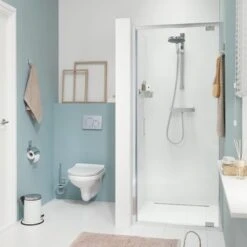 De Sealskin Swingdeur voor Nis Compact 80×195 cm Chroom is een solide douchedeur met een moderne uitstraling. Er is veel aandacht geschonken aan de details; zo zijn schroeven waar mogelijk onzichtbaar weggewerkt. Dat is mooi én makkelijk in het onderhoud. De strakke vormgeving zonder onnodige randjes maken dit een minimalistische en tegelijkertijd duurzame douchedeur. De deur draait iets van de muur af. En dat is wel zo handig als je rekening moet houden met bijvoorbeeld een radiator of raamkozijn. Deze draaideur is links en rechts draaiend te monteren.