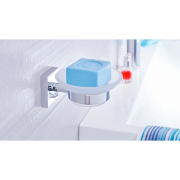 De elegante tesa® Ekkro zeephouder bestaat uit een combinatie van hoogglans chroom en gesatineerd glas. Het is een elegant en praktisch badkameraccessoire. Monteren is heel eenvoudig met de gepatenteerde tesa® Power.Kit technologie: 1) Plak de adapter op de muur en vul deze met de tesa® Power.Kit-lijm 2) Laat vervolgens de lijm 12 uur uitharden 3) Schroef de houder vast op de adapter en plaats het zeepschaaltje in de houder. Alle benodigde materialen zijn in de verpakking bijgesloten: houder met zeepschaal en bevestigingset BK20. De houder is eenvoudig te verwijderen zonder lijmresten of beschadiging. Hij is opnieuw te monteren met een nieuwe adapterset BK20, deze is ook los te koop. Geschikt voor tegels, metaal, natuursteen, marmer, beton, hout, glas en vele soorten kunststof. Niet geschikt voor behang, stucwerk en andere oppervlakken met een antikleeflaag. Er zijn van deze Ekkro serie diverse sanitair accessoires verkrijgbaar, voor een complete look. Geef je toilet of badkamer een nieuwe stijl met Ekkro.