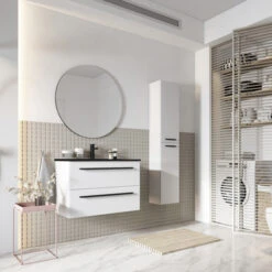 Het Tiger Helsinki badkamermeubel is een simplistisch, modern en greeploos meubel in Scandinavisch design. De wastafelonderkast is voorzien ruime lades waarin alle badkamerspullen overzichtelijk opgeborgen kunnen worden. Voor extra comfort is deze onderkast voorzien van handige ‘push to open’ lades waardoor ze al middels één simpele aanraking openen. De warme houttint geeft een sfeervol karakter aan het meubel. Daarnaast krijgt het meubel, door de voelbare houtnerf, een mooie natuurlijke uitstraling .De strak vomgegeven polybeton wastafel maakt deze set compleet.