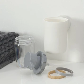 De Tiger Zeepdispenser Urban Hangend Wit is uitgevoerd in de kleur mat wit en grijs en wordt geleverd met twee decorringen. De decorringen, in de kleur licht eiken en grijs, maken het mogelijk een subtiel kleuraccent toe te voegen. Het is ook mogelijk de zeepdispenser zonder de decorring te monteren waardoor het zeer eenvoudig is om het product aan de gewenste stijl aan te passen. Bij de montage van het artikel wordt gebruik gemaakt van een muurplaatje waardoor de bijgeleverde bevestigingsmaterialen uit het zicht verdwijnen. De Urban serie bevat tevens een vrijstaande versie van de zeepdispenser, maar ook een groot aantal aanvullende accessoires voor de badkamer en toiletruimte. Alle in dezelfde stijl. De artikelen uit de serie zijn ook in de kleur mat zwart verkrijgbaar, waarbij natuurlijk ook weer diverse decorringen worden meegeleverd. De zeepdispenser is tevens geschikt voor montage met TigerFix type 1, waarmee accessoires snel en eenvoudig op een gladde, harde ondergrond te bevestigen zijn door middel van een gepatenteerd lijmsysteem. Boren is niet noodzakelijk en de accessoires zijn eenvoudig te verwijderen zonder dat er resten op de ondergrond achterblijven. TigerFix is los verkrijgbaar.